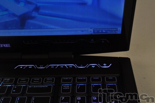 M17x R3键盘整体设计风格较比M17x R2基本不变,仅仅在功能键及指示灯外观上有一些直观的变化。