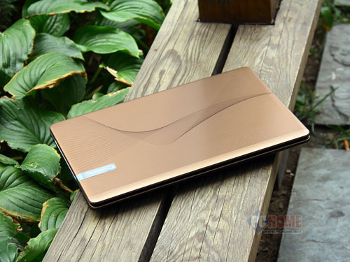 这款NV57采用金棕色的配色设计机身,顶盖部分融入了独特的波漾纹理图案,凸显精致细腻的设计元素。内饰部分采用了金棕色与金属银色搭配的设计,时尚前卫。屏幕方面,该机搭配的是15.6英寸LED背光显示屏,分辨率为1366×768。