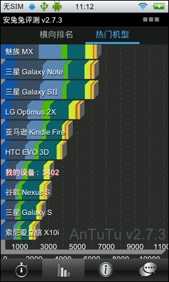 得益于采用的是A9架构的处理器,步步高vivo E3在安兔兔跑分中成绩不错,3400多分的成绩处于中上水平,比一般的1GHz处理器成绩高了不少。