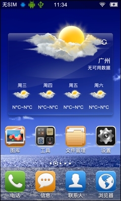 如果你是一位男性用户的话,可能不一定喜欢可爱风格的场景UI,这时就可以选择回到传统的桌面模式,传统桌面模式一样非常好看。传统桌面分为默认分为5个分屏,用户可自行添加各种小插件;分屏数量亦可随用户应用程序数量添加,因此步步高vivo E3的传统桌面中没有设置二级应用程序菜单,所有应用程序图标都放在里桌面上,方便用户使用。另外,在步步高vivo E3的下通知栏中亦添加了快捷设置工具,使用时也很方便。
