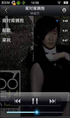 在步步高vivo E3的音乐播放器曲目列表中界面也非常华丽,也能显示专辑封面,另外播放音乐时还能横屏显示,用户就可以浏览更多相关的音乐信息,非常华丽和人性化。