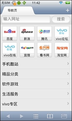 在步步高vivo E3的自带浏览器中的网页体验非常不错。令人惊喜的是,步步高vivo E3的网页页面加载速度很快,滚动和缩放页面时也非常流畅,在播放视频时也不会出现卡顿的情况,总体网页体验非常不错。