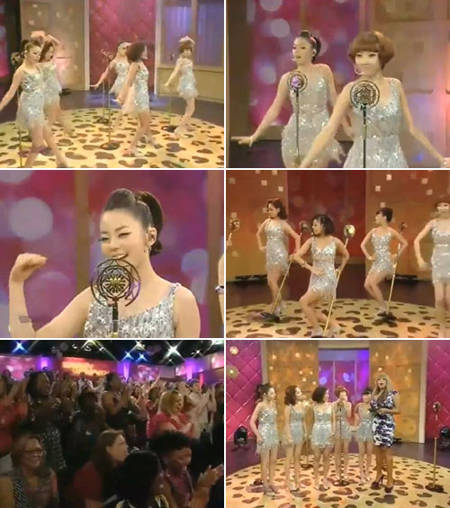 新浪娱乐讯 北京时间7月21日消息,据韩国媒体报道,女子五人组Wonder Girls第一次在美国全国直播的电视荧屏前表演《Nobody》舞蹈。