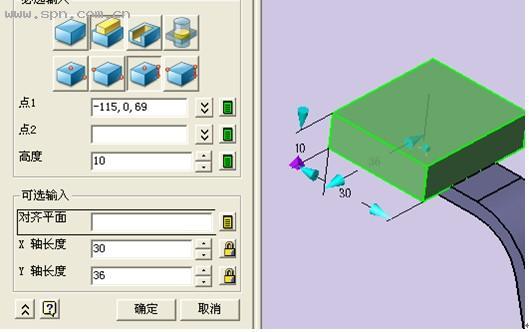 使用组合模型 功能,选择之前做的实体为基体,上一步修剪完成的两个实体为合并体。单击确定,零件合并成一个实体。如图1-21所示。