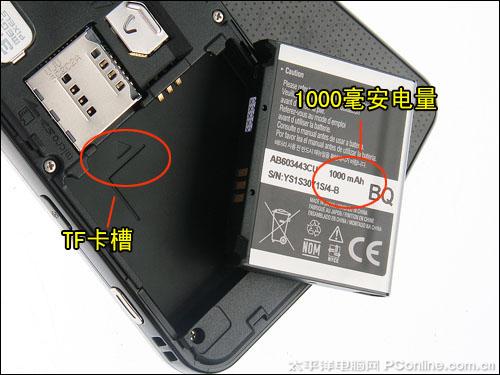 屏幕大的手机向来在大家心里都认为是十分耗电的,虽然屏幕大耗电更多是事实,但是随着科技的发展,低能耗的显示屏也逐渐设计并被商用。因此,就拿三星S5230来说,其搭配了容量为1000毫安的锂电池,在每天十分钟通话、十几个短信收发、十分钟上网、二十分钟听歌的日常使用下,能够待机3天左右,这对于一部大屏手机来说,成绩是相当突出的,值得推荐。打开后盖,我们可以看到无需拔电池就能插拔SIM手机卡,但是TF卡却要拔出电池才能够插拔,这有点不够人性化。
