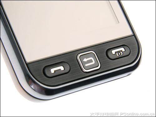 屏幕下方就是三个硬的按键,分别为拨打、返回、挂机键。按键的反馈力度控制的不错,不过按下时会发出一定的响声。屏幕的周边由一圈抛光的高硬度塑料包围,显得时尚耀眼。