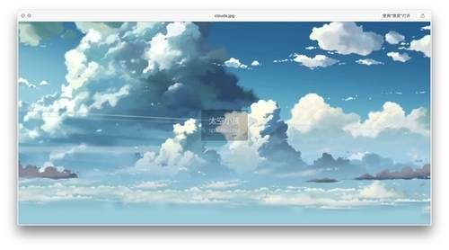 再根据构图找一张动漫风格的云彩素材图。本文所使用的素材来源于《秒速 5 厘米》电影截图,版权 © Makoto Shinkai / CoMix Wave。使用素材的时候请留意著作权,未经原作者书面授权不要用于商业用途,不要怪我没提醒。