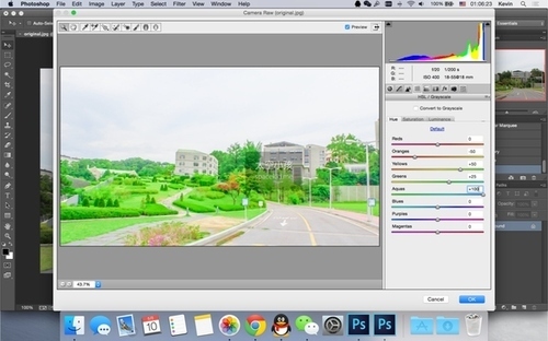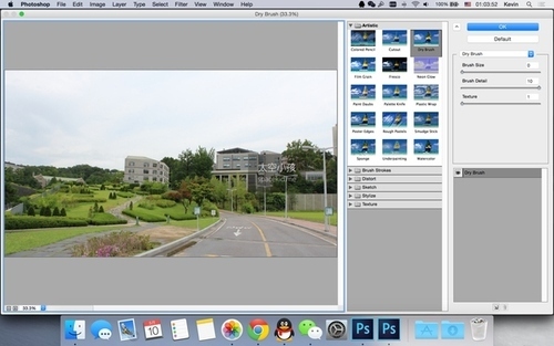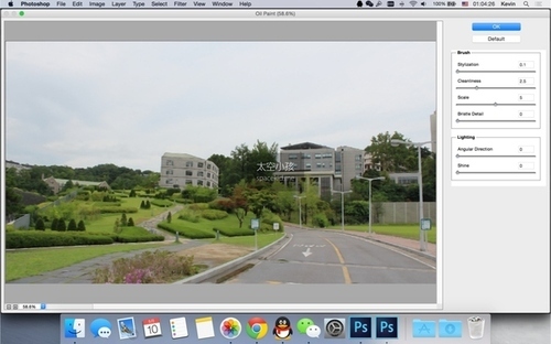 备注:我有两个 Photoshop,这是因为 Photoshop CC 2014 没有“油画”滤镜(然而这并没有什么用,你也可以只用“干画笔”滤镜),所以我用了 Photoshop CC。另外,原谅我的 Photoshop CC 是英文版的,因为简体中文版在 OS X Yosemite 下不能正常使用“滤镜库”功能。我会对所有操作进行中文说明。