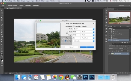 完成“干画笔”滤镜以后,我把原图尺寸调整为“1920 × 1080”,因为如果继续用原始尺寸的话,“油画”滤镜笔触又会过小。