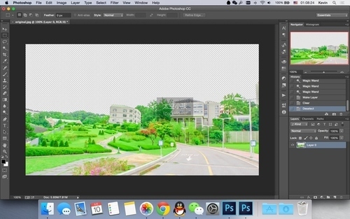 然后用“魔棒”/“快速选择工具”或你喜爱的其他抠图方式把照片中那渣渣的天空给抠掉。