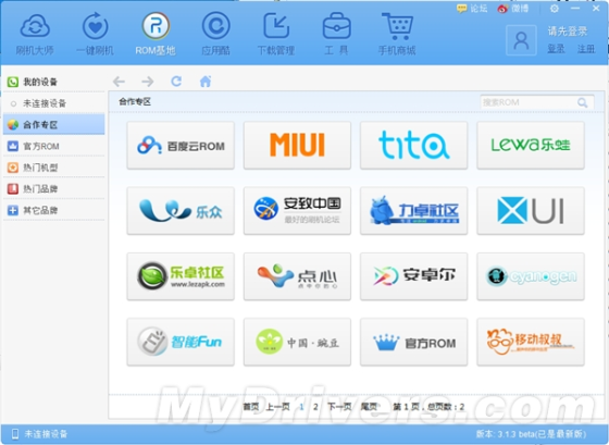 刷机大师使用ROM基地的资源,因此ROM是很丰富的,与其他软件一样,如果已经连接手机,会推荐当前手机ROM,如果不连接手机则会显示其他ROM。
