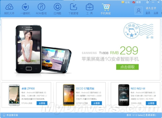 刷机大师还为我们提供了手机商城功能,不过看到那299的SANMENG,笔者真不想说些什么。笔者在使用清除锁屏密码功能时,不管是密码解锁还是图案解锁,均宣告失败,使用其他软件则正常清除,刷机大师功能虽多,但在细节上还需要完善。