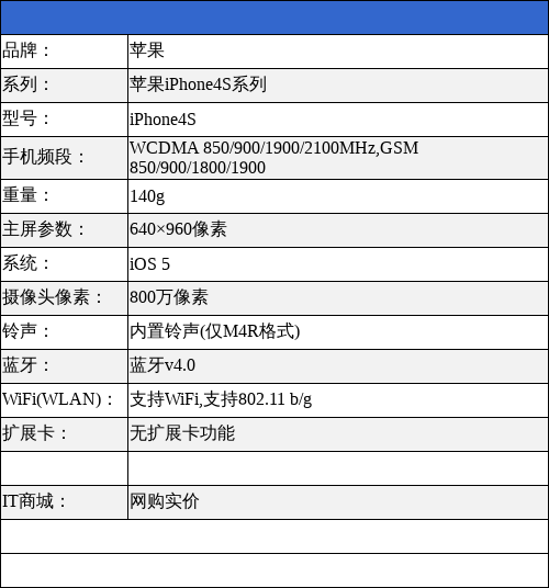 [参考价格]:苹果iPhone4S 4190元