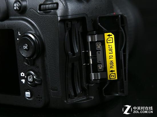 D7100采用双SD卡槽,可以有效保证拍摄照片的安全性