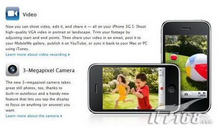 至于手机内置的摄像头方面,iPhone 3G S则如人们预言的那样,将过去的200万像素摄像头升级到300万像素,并在拍照功能方面增加了自动聚焦、触控聚焦、自动白平衡及自动曝光等拍照功能,甚至还拥有最近10厘米的微距模式,完全改进了以往iPhone在拍照方面的存在的不足。