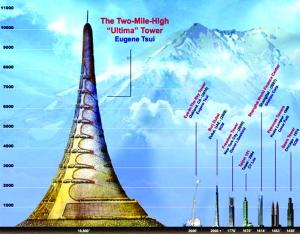 著名的美籍华裔建筑大师崔悦君(Eugene Tsui)打算在人口密集的旧金山市建造一座高达3200米(即2英里)的圆锥形“终极塔楼”,它将有500层高,底座直径达1829米,能容纳100万人同时居住,造价估计高达150亿美元。尽管它目