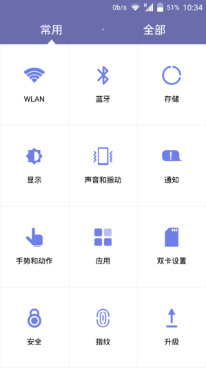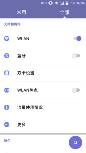 同样的,中兴AXON的设置页面虽然不是两段式设计,但同样也分为了“常用”与“全部”两个模块。有意思的是,在全部模块中,中兴AXON还特意添加了一个搜索按钮在屏幕左下方,以方便人们寻找不太常见的设置项。