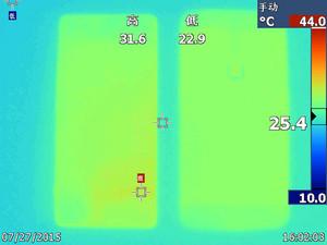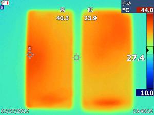 充电30min发热对比,左边为nubia Z9右边为中兴AXON天机,充电器同样为5V/2A,室温25°