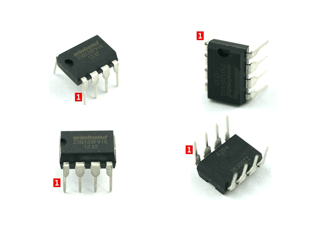 无论是DIP-8直插封装还是SOP-8贴片封装,都采用了8个引脚,芯片的左下角为第一引脚,而左上角为第八个引脚。BIOS芯片的主流容量一般为32Mb、64Mb、128Mb,对应的BIOS文件大小分别为4MB、8MB、16MB。