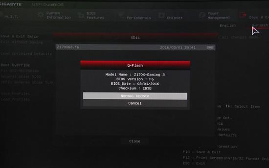 另外华擎还为BIOS刷新程序Instant Flash提供了快捷方式,在系统POST开始界面,按F6即可直接进入简化版Instant Flash,同样从U盘选中要刷新的BIOS文件,回车执行完成BIOS的更新。