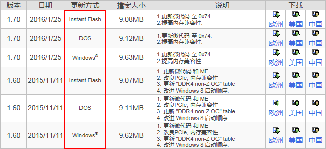 值得注意的华擎主板的原始BIOS文件为BIOS环境(Instant Flash)文件,这个文件类型为数字,是不可执行文件,从官网列表中选择需留意。