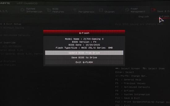 使 用BIOS环境更新BIOS,首先需要将下载的BIOS文件放置到一个FAT32格式的U盘当中,启动电脑的过程中按DEL键进入BIOS界面,然后进入 到Q-Flash页面,选择从本地磁盘更新BIOS,然后在驱动器路径中选择FAT32格式U盘的BIOS文件,回车选择“标准更新”即开始BIOS更 新。