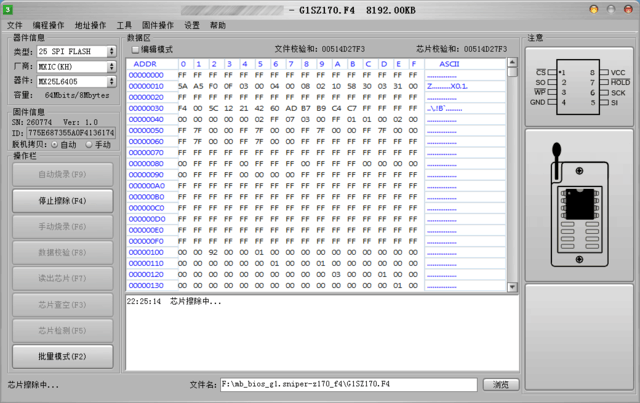 对于硬件厂商以及大规模的BIOS芯片烧录,显然不是将每块主板启动至系统烧录,那样效率太低,而且对于已经刷死的BIOS,主板是无法启动的,这就需要用到ROM烧录器,ROM烧录器的规格有很多种,主板的芯片类型一般为25 SPI FLASH系列。