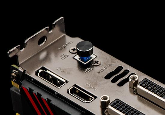 接口方面,耕升GTX950关羽采用的是DVI-I+DVI-D+HDMI+DP的组合,全接口设计,接口全部使用屏蔽罩处理,满足玩家用户对显示输出的各种需求。耕升GTX950关羽拥有一个备份BIOS,并且在显卡侧面配备了一个BIOS切换开关,可有效杜绝操作失误损坏BIOS导致显卡无法正常工作的情况,并且方便发烧超频玩家发掘显卡的超频潜力。