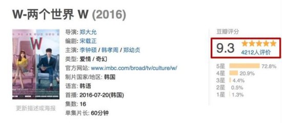 答案是肯定的,才刚播了两集就在豆瓣上被打出9.3高分的《W-两个世界》(下称《W》),是新近的爆款。早在该剧确定编剧及主演名单时,中韩两国观众早已沸腾,该剧的编剧宋载正,曾经写过韩剧史TOP5作品之一的《九回时间旅行》,其烧脑程度和有深度的内涵不输许多英美剧,而《W》主演李钟硕的超高人气也自不必说,强强结合自然不会让人失望。