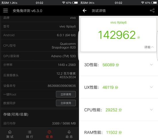 vivo Xplay6继续搭载了骁龙820处理器,运行频率2.15GHz,并配备6GB内存和128GB存储空间。有小伙伴会问为啥不是骁龙821?按照笔者的理解还是高通供货的问题。与互联网品牌预约一批卖一批不同,vivo需要为线上线下的购买渠道提供现货,而且是百万级的需求。