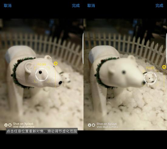 双摄像头可以模拟大光圈单反的虚化效果,而更好玩的是可以实现先拍照后对焦。vivo Xplay6可以实现F0.95-F16多档光圈的效果,用户可以在相册随时调整双摄拍出来的照片。对了,这里给大家讲个小技巧,使用双摄拍照最好使用点对焦触控拍照模式。这样手机可以更好识别主体和背景,达到最佳的虚化效果。