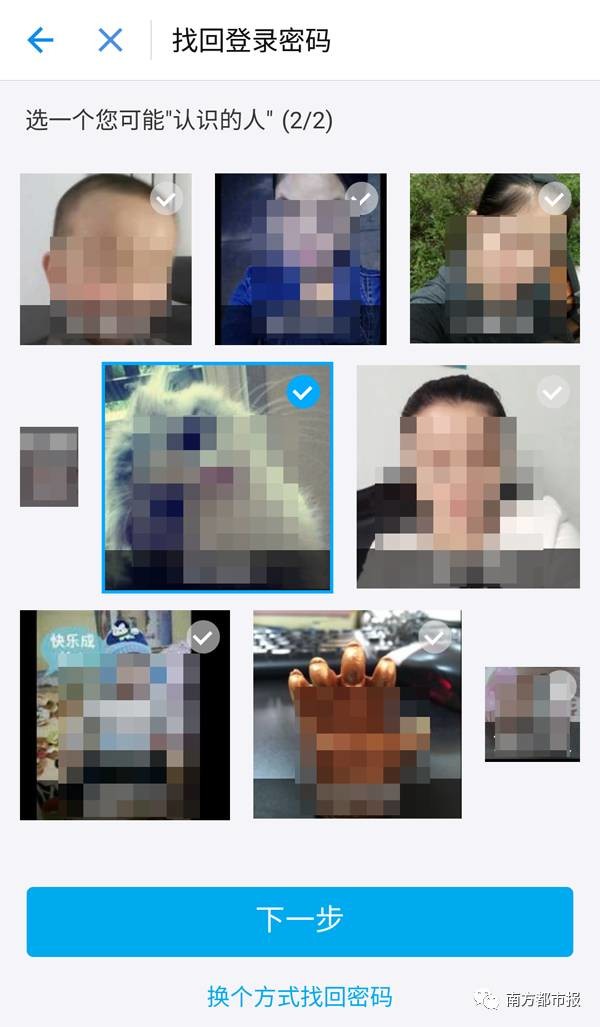 南都记者表示,同事刚好知道她最近买了手机壳、选择“认识的人”则刚好是另一位同事,因此顺利答对两个问题,成功到达重置密码一步。