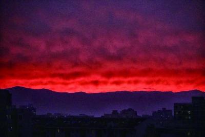 在此咱们先了解一下火烧云:火烧云一般发生在日出或日落时,特别是雷雨之后的日落前后,在天空的西部由于地面蒸发旺盛,大气中上升气流的作用较大,使火烧云的形状千变万化,它预示着天气暖热、雨量丰富的时期到来。这是一种自然现象,昨晚的火烧云,是因为白天骤降大雨,雨后初晴称为霁,可以说与白天的降雨有直接的关系。@气象北京