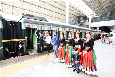 为促进我省旅游资源开发,推动旅游产业升级,促进青藏铁路沿线城乡经济发展,加快贫困地区脱贫致富,青藏铁路公司开启了青藏高原“铁路+景区”的旅游新模式,去年开通了西宁至茶卡旅游专列,旅游专列开通后受到了旅客的广泛好评。今年,在此基础上,为了继续扩大新模式推广,方便旅客出游,青藏铁路公司自6月24日又开行了首趟“星空之城”Y965/6/7/8次旅游列车。据青藏铁路公司客货营销部负责人介绍,随着7月份我省旅游旺季的到来,“星空之城”旅游列车预计从7月8日开始隔日开行,Y967次列车早上7时35分从西宁站发车,11时59分到达德令哈站;Y966/5/8次列车早上5时20分从德令哈站发车,7时48分到达茶卡站,10时10分从茶卡站发车,17时55分到达西宁站。在历时两天的时间内,游客可游览柴达木万亩枸杞园、外星人遗址、柯鲁克湖、茶卡盐湖、仙女湾等8个独具青藏高原特色和历史文化的景区。