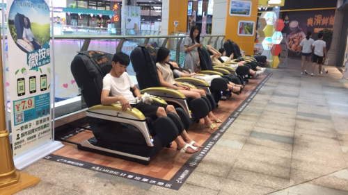 1.按摩椅早在1996年就进入了中国,一直不温不火,但从去年6月份开始大量出现在各个场所。自助共享按摩非常火,有做到年入几百万的,做得差的也有赚几十万的,这个市场还没有饱和,尤其是二三四线城市,还处在开发阶段,是一次不错的生意机会。