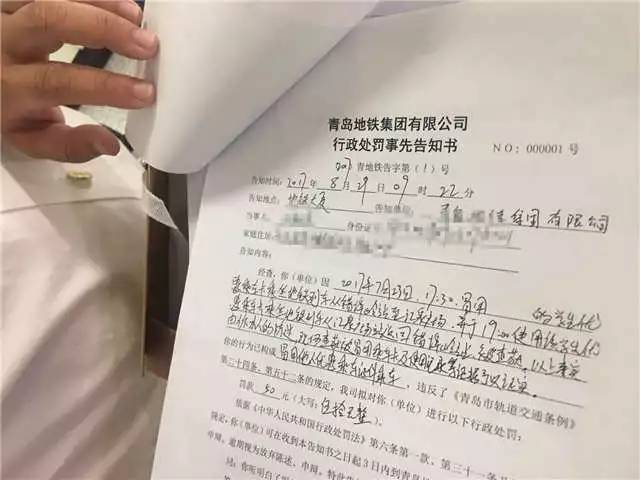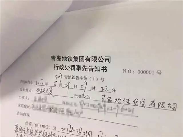 这是青岛地铁开出的首张罚单!