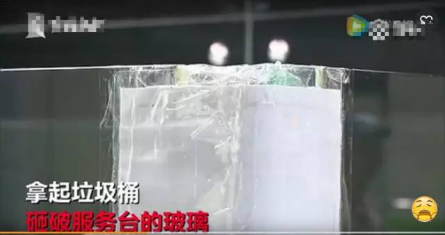 先拿起垃圾桶砸向服务台的玻璃