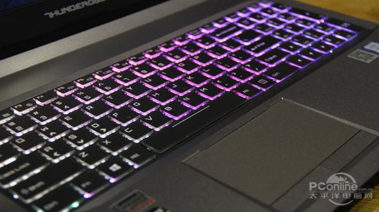 整体设计上,ST Plus是一款较为低调的游戏本,外表素雅,但是内里乾坤。其C面采用了天面雕刻工艺,使用1600万色RGB背光键盘,每个按基按键都能单独发光,可以通过软件调控键盘灯光效果,而使用Fn按键搭配数字键上功能键可以实现快捷开关/亮度调节。