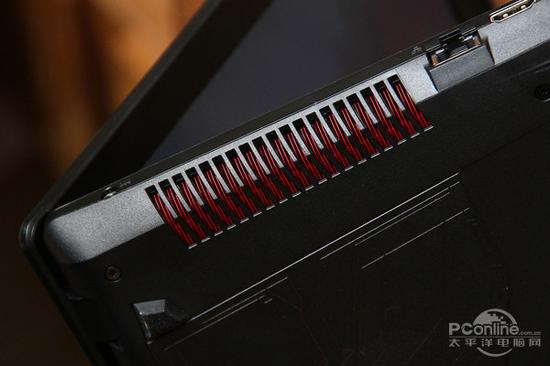 在散热结构上线,华硕的ZX53VED的散热位置位于中后其位置,整齐划一的菱形栅格通风孔,上下各两组栅格进行散热,还是很靠谱的。