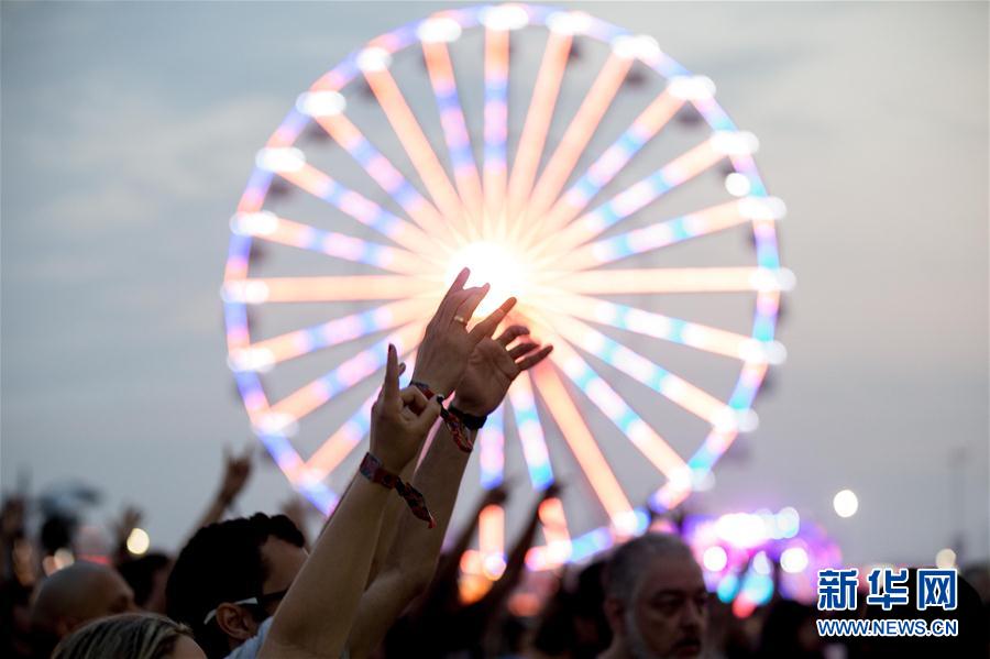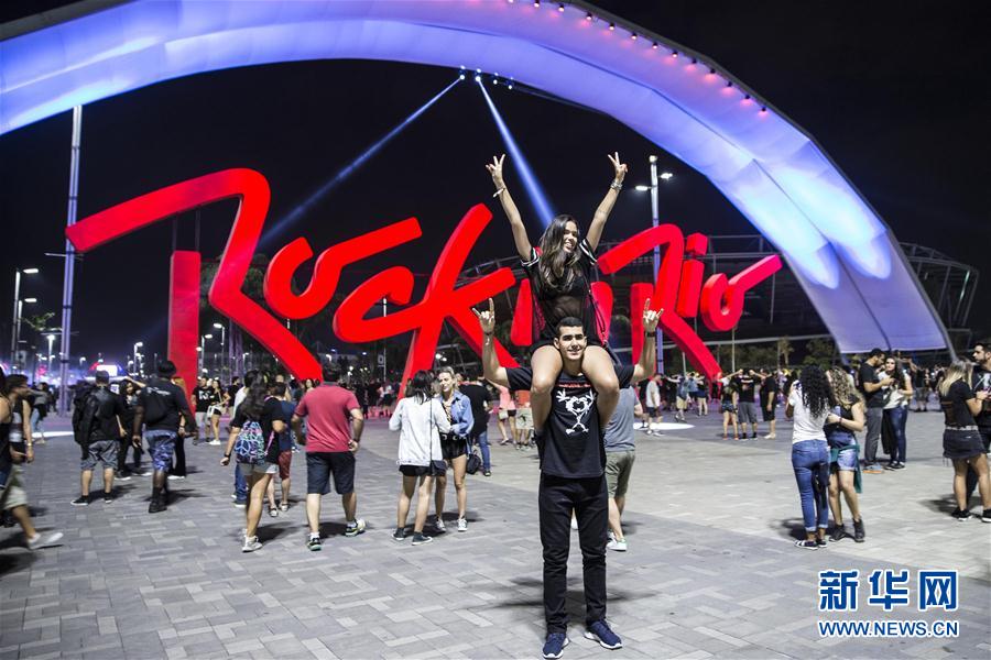 9月24日,在巴西里约热内卢,乐迷在摇滚音乐节上观看演出。新华社记者李明摄