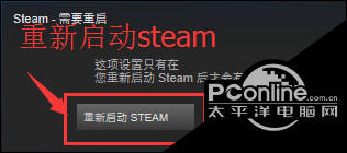 4.点击确认,随后Steam会要求重启。