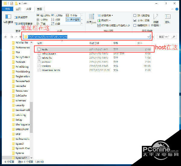 (看得懂路径的可以直接去找Host文件,看不懂路径的可以把这个路径复制到"资源管理器"中的地址栏中,按键盘回车键即可进入)