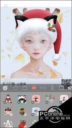 不过Faceu激萌软件中的圣诞节素材毕竟的少,还不能对贴纸拖拉调整大小,这会造成照片跟素材融合度会有瑕疵,且不能保证圣诞帽是自己喜欢的大小和角度。