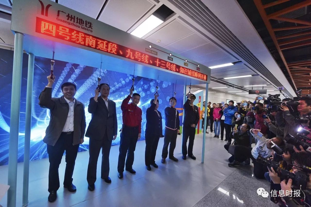 今日上午,广州地铁四号线南延段、九号线一期、十三号线首期和十四号线知识城支线4条地铁新线开通试运营!三号线高增站、四号线庆盛站也于同日同步开通。