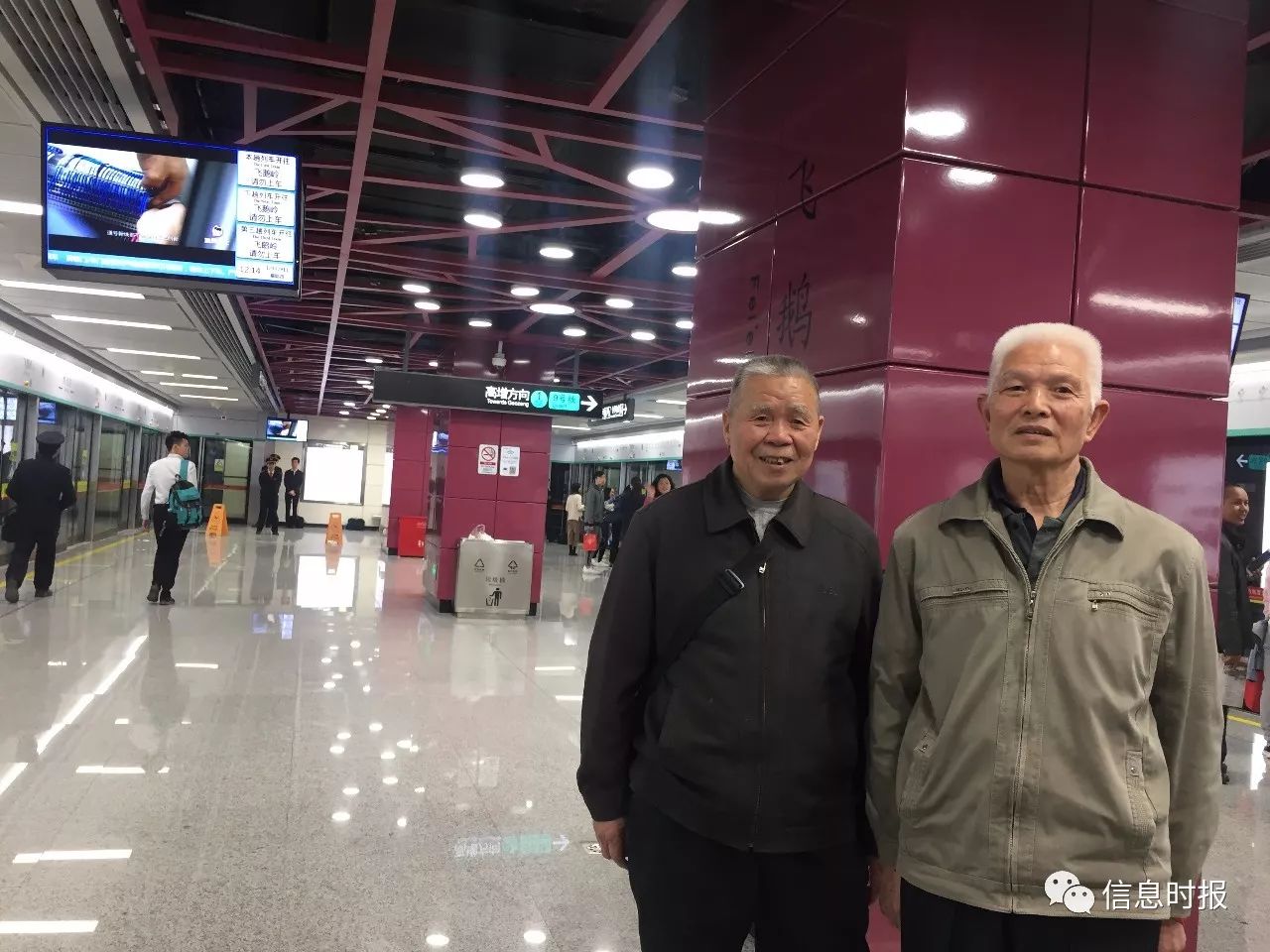 80岁骆老太和78岁李老太和四个年轻人从新和家里走了一公里到新和地铁总站,坐到镇龙地铁站后折回。年轻人出站去玩了,老人家体验了一把新地铁就回家。