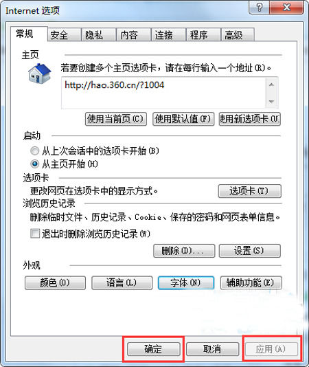 5、点击应用并确定,重启IE浏览器即可。
