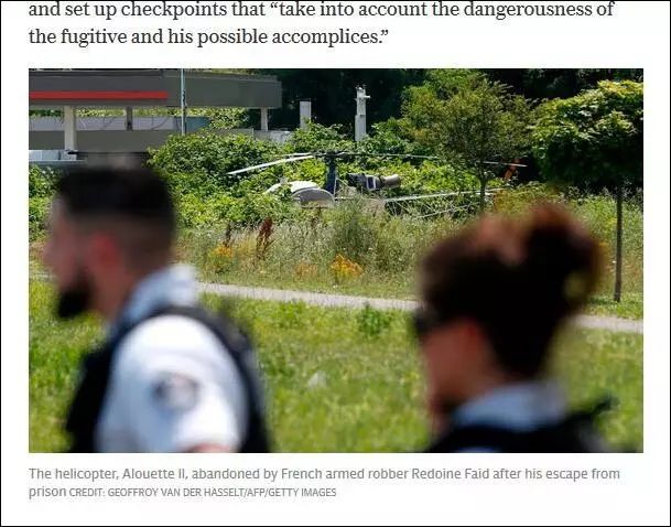 英国广播公司(BBC)1日报道说,在法国巴黎,一名臭名昭著的歹徒乘直升机越狱成功。这名歹徒曾犯下武装抢劫重罪,同时也是越狱惯犯——这已经是他第二次越狱成功。他还曾经写过书,讲述自己的“传奇经历”。法国政府及警方已经宣布将全力展开搜查,同时也要求各监狱加强警戒,避免再次发生类似的恶性事件。