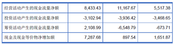 数据显示,聚杰微纤2015年-2017年经营活动产生现金流量净额分别为5517.38万元、11167.67万元、8433.43万元,其中聚杰微纤2017年经营活动产生的现金流量净额较2016年下降了24.48%。