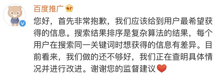 据北青报消息,为了测试百度的整改效果,记者又搜索了“北京市疾病预防控制中心”、“北京市卫生计生委”、“北京协和医院”、“朝阳医院”等卫生机构、医院信息,弹出的置顶第一条就是官网,原来满页的广告已不见踪影,让用户顿时感到眼前清净了许多。