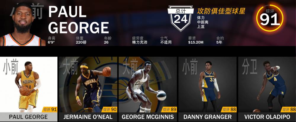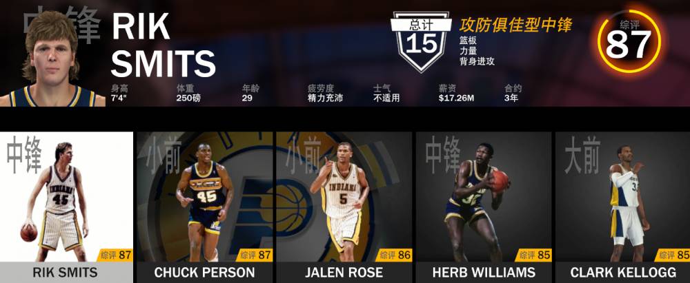 直播吧10月6日讯 今天距NBA常规赛揭幕战还有11天!小编带领各位吧友了解一下2K19中的步行者队最佳十五人阵容!